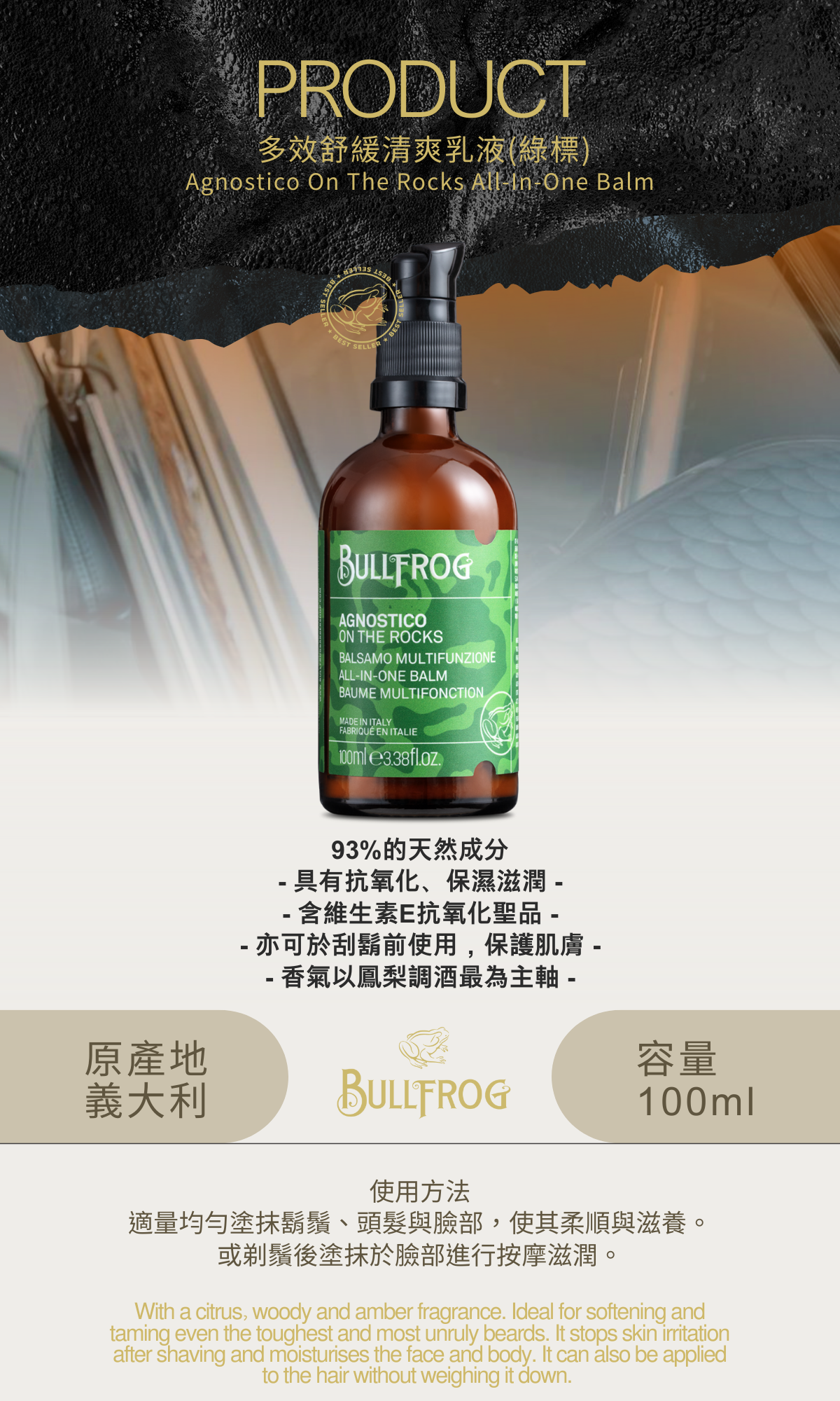 一款多用途產品。專門來訓服那些堅硬且頑固的鬍鬚。塗抹於鬍鬚與頭髮使其順澤且不壓垮頭髮,或是用於臉部進行保濕滋潤。亦可於刮鬍後塗抹臉部肌膚,防止肌膚刺激。