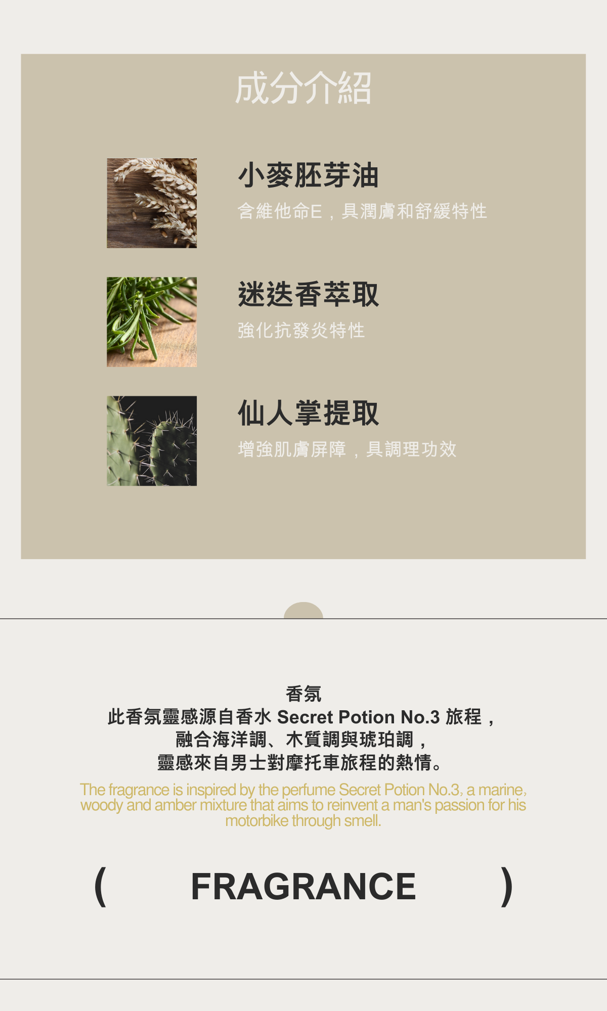 刮鬍前滋潤肌膚,亦可保養滋潤軟化鬍鬚使用