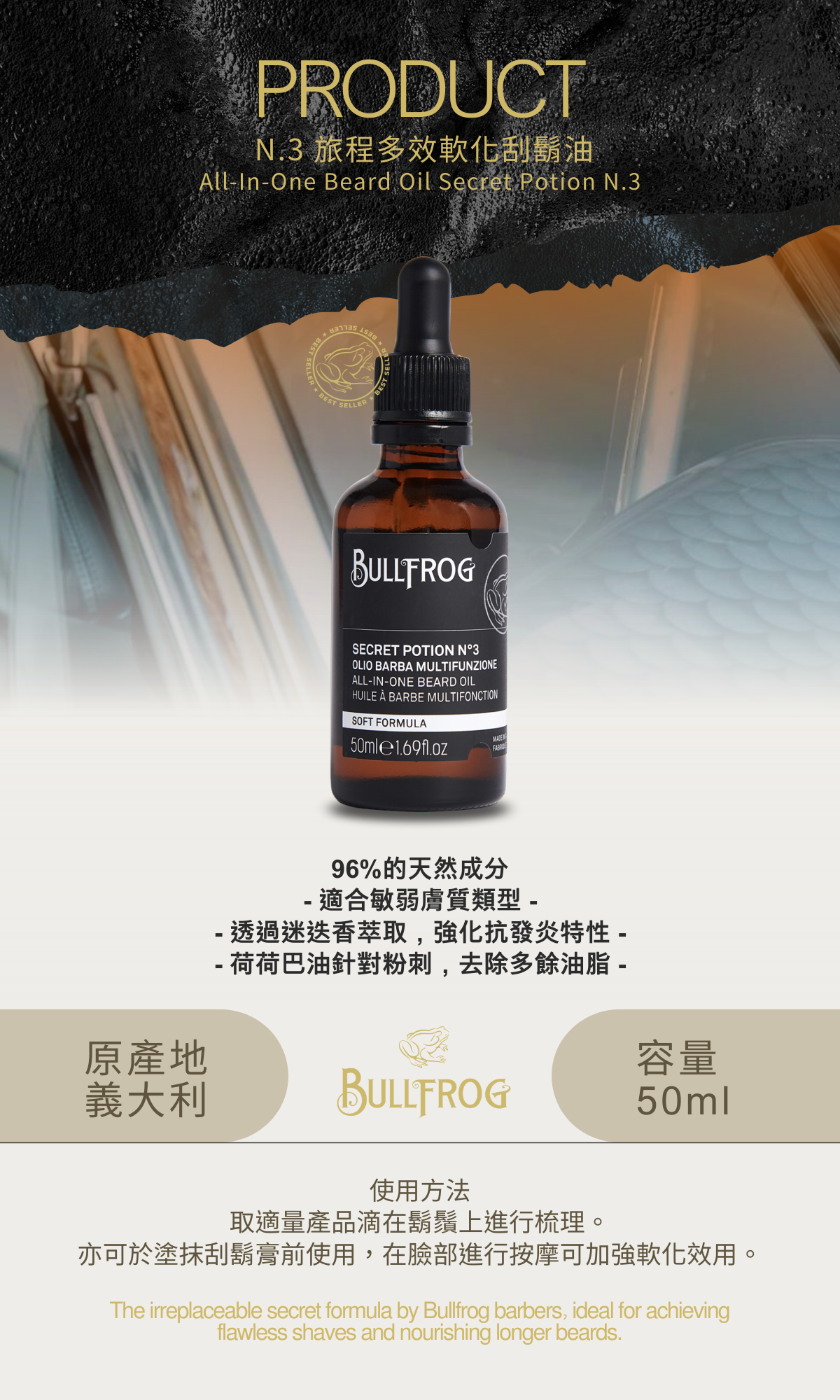 一款多功能油,既適合用於刮鬍過程中,也可作為鬍後護理,滋養並柔順特別毛躁的鬍鬚。