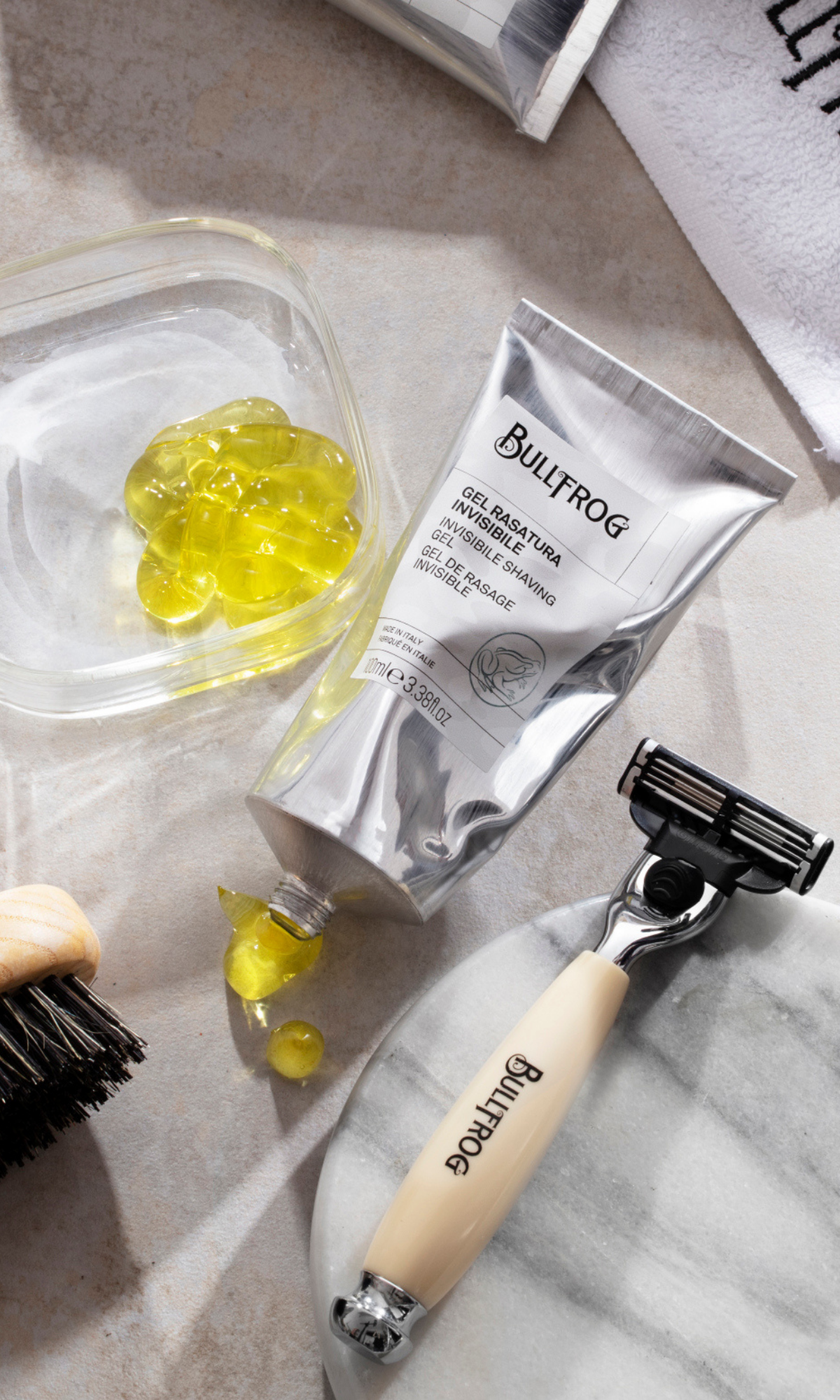 在刀片與肌膚之間,形成一層薄薄的保護層並軟化鬍鬚